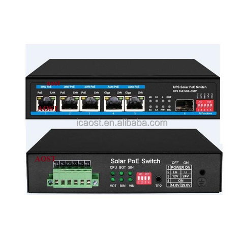 Interruptor de energía Solar, fuente de alimentación solar de 5 puertos Gigabit, 48V/24V, PoE, UPS